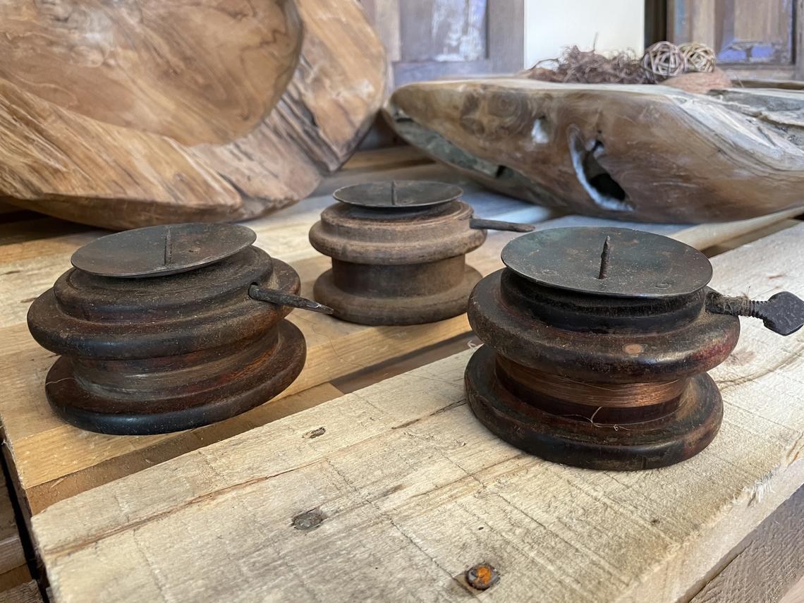 Antik Kerzenständer/Halter aus Antikholz jeder ein Einzelstück/